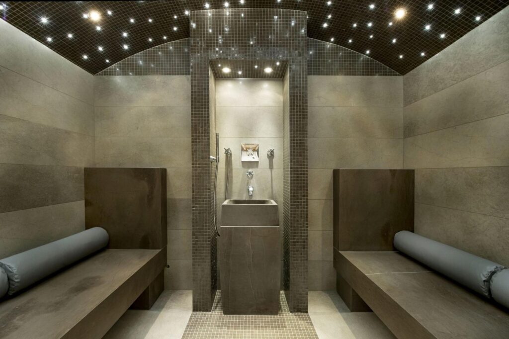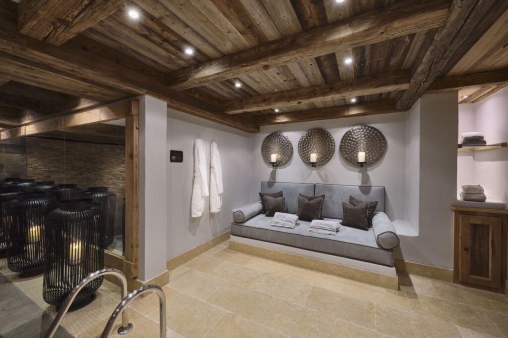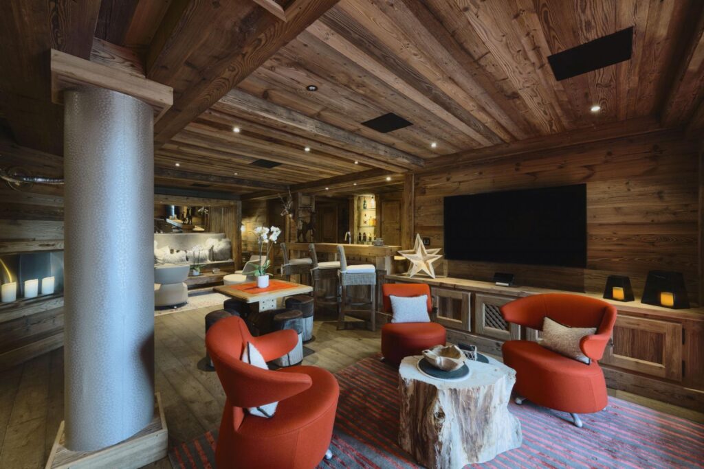 After a day on the slopes, the spa area invites you to relax. It features an infinity pool, Jacuzzi, hammam, and massage room, along with an outdoor Nordic bath, perfect for soaking under the stars. There’s also a cinema room and games room with table football, ping-pong, and pinball, providing you a wide choice of ways to spend cozy winter evenings.