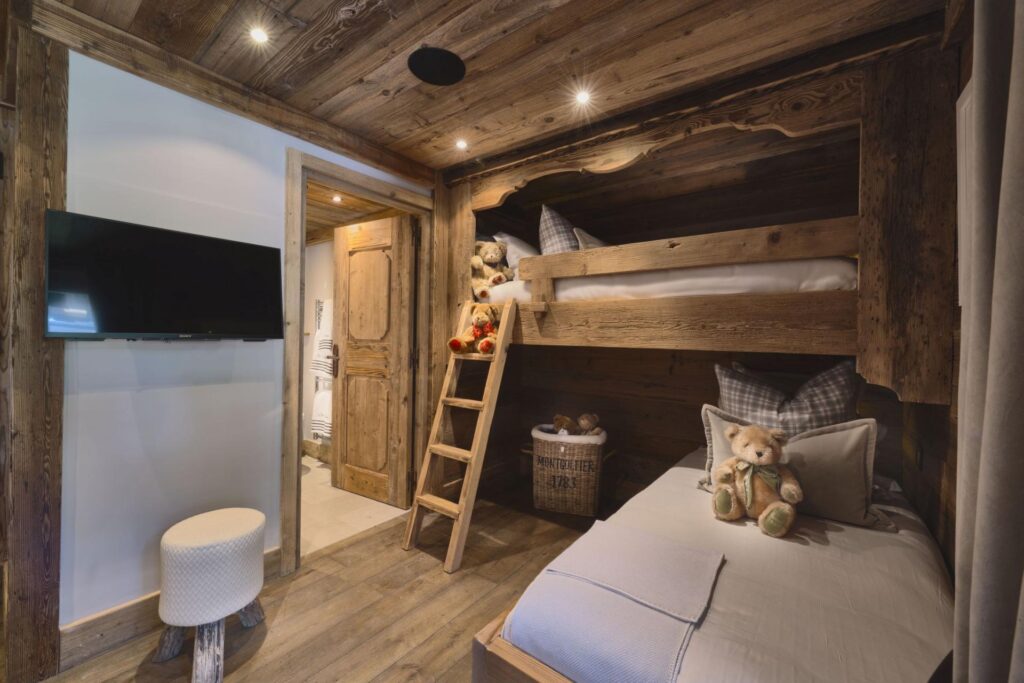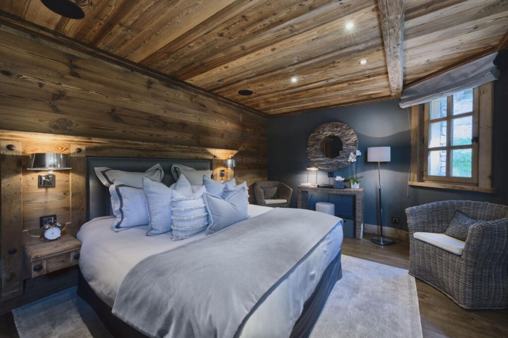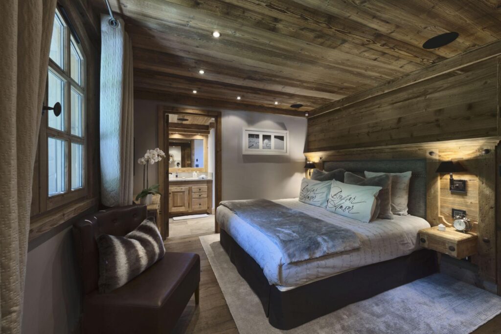 The chalet’s design draws on local Savoyard architecture, using stone, wood, and soft natural tones to create a calm, welcoming atmosphere. Thoughtful details, from bespoke furniture to carefully chosen artwork, make the space feel like a home away from home.