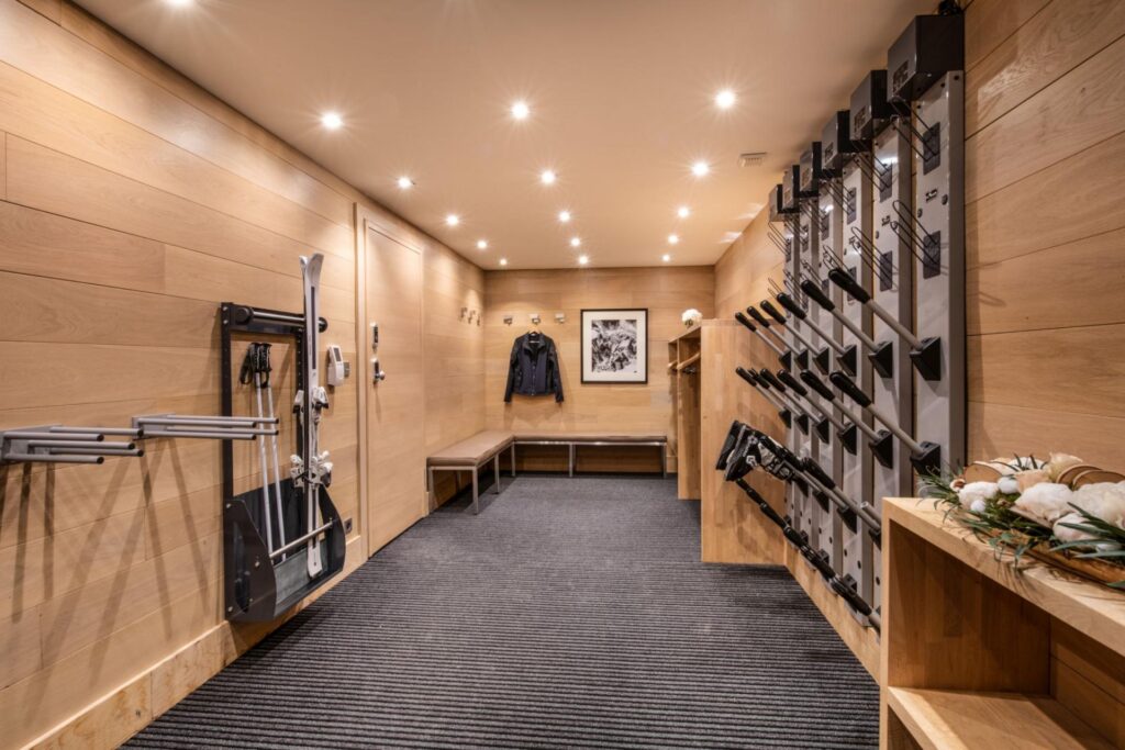 Its position combines convenience with privacy, allowing guests to enjoy skiing directly from the door and then retreat to a space designed for comfort and family life.