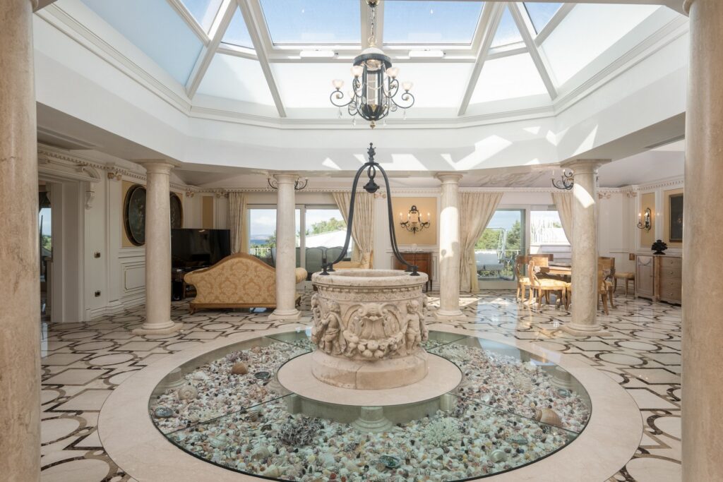 Set within a lush private park that stretches to the sparkling shoreline, this 6-hectare estate invites you to verdant Italian gardens shaded by ancient trees and laced with winding paths that lead you closer to the sea.