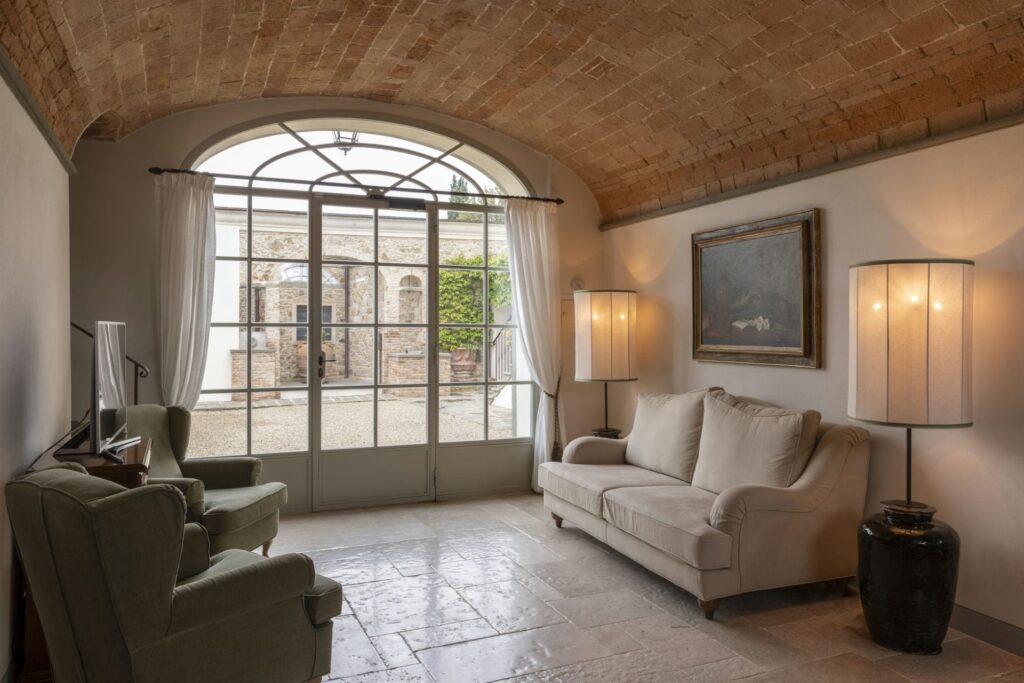 The estate is made up of a 14th Century Hamlet and a farm that produces excellent quality IGP olive oil. It is ideally situated a few kilometers to the south of Florence, right next to the heart of Chianti’s countryside. Here, you can experience the charm of rural Tuscany, while remaining close to Florence’s art, history, and architecture.