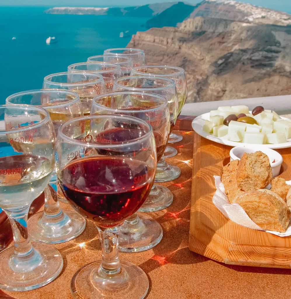 Santorini is famous for its unique volcanic vineyards and exceptional wines, making wine tasting a must-do experience. Visitors can explore local wineries to sample Assyrtiko, Vinsanto, and Aidani varieties, while enjoying vineyard tours, guided tastings, and stunning views of the caldera and Aegean Sea.
