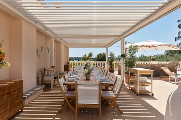 The interiors combine natural materials such as rock flooring, white and grey marble, and teak and beige wood. Its clean-lined architecture reflects the style of the South of France, yet the estate’s historical and cultural significance gives it a character that goes far beyond aesthetics.
