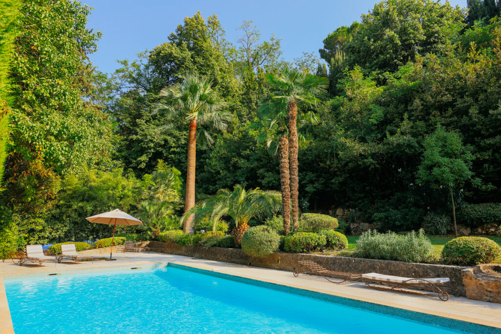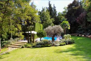 Located in the heart of the Côte d’Azur, it is just a few hundred meters away from the ramparts of the medieval city of Vence. It is surrounded by a beautifully landscaped park of approximately 4,500 square metres, creating a sense of tranquillity. A large swimming pool, discreetly positioned away from view, completes the setting.